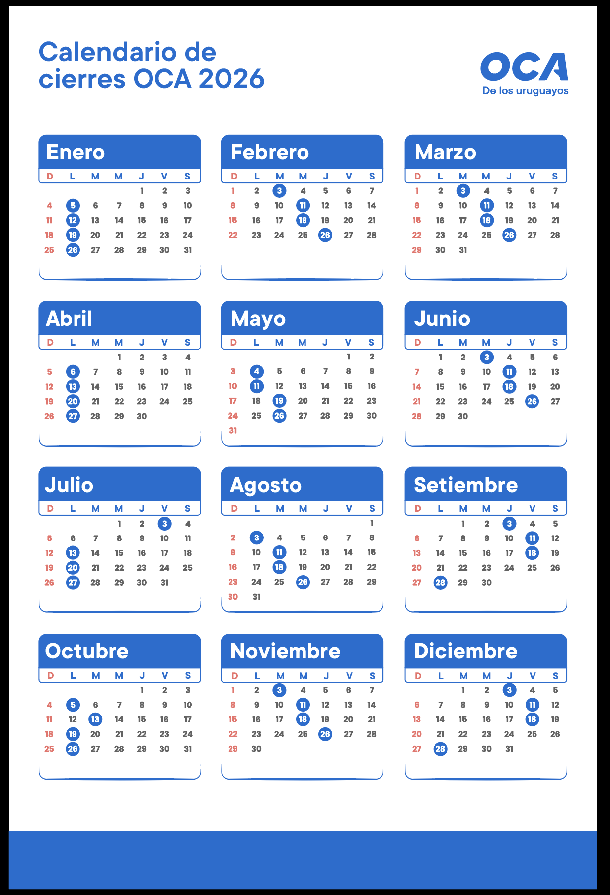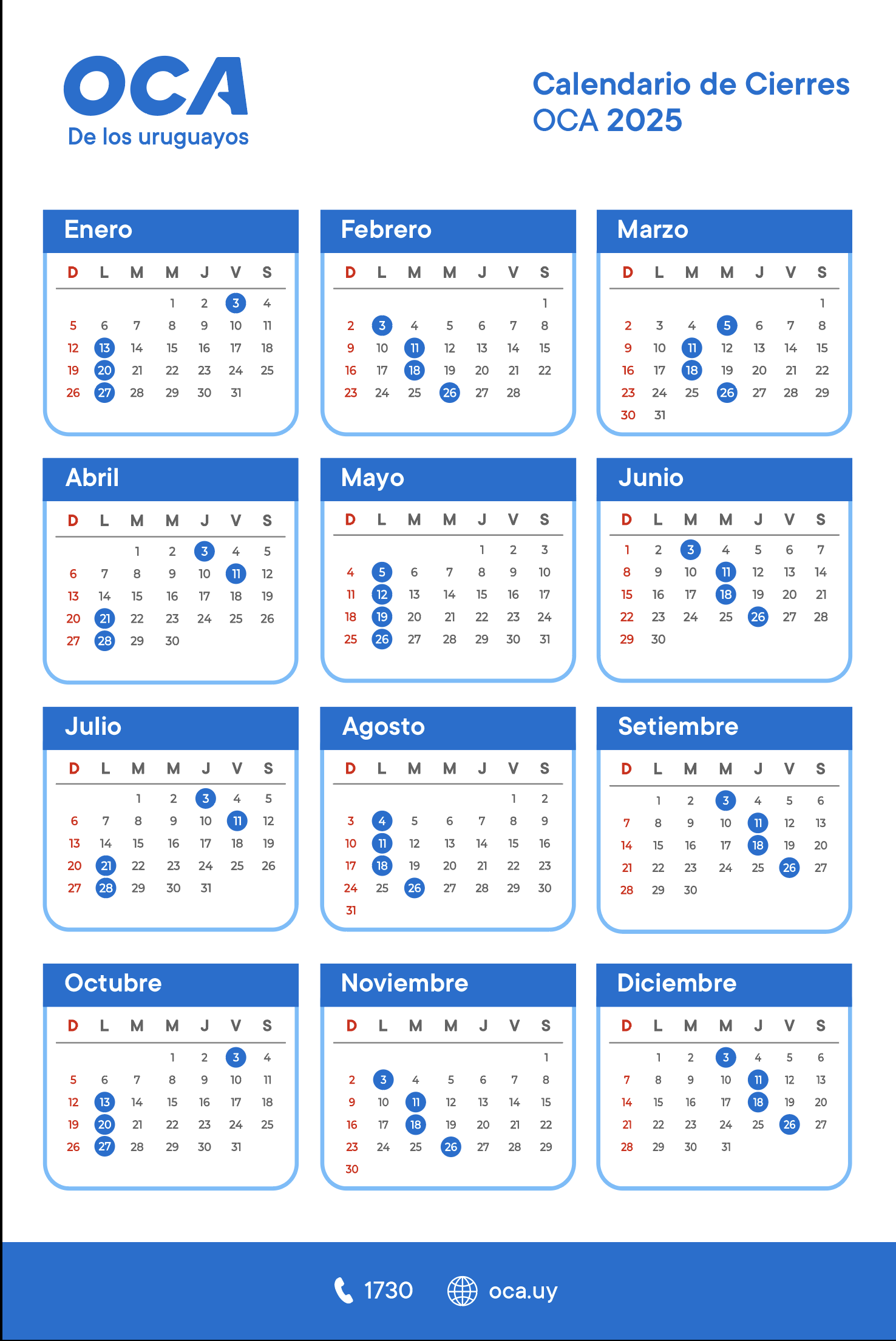Desde tus cuentas OCA Blue ingresando a micuenta.oca.com.uy o a través de la App OCA.